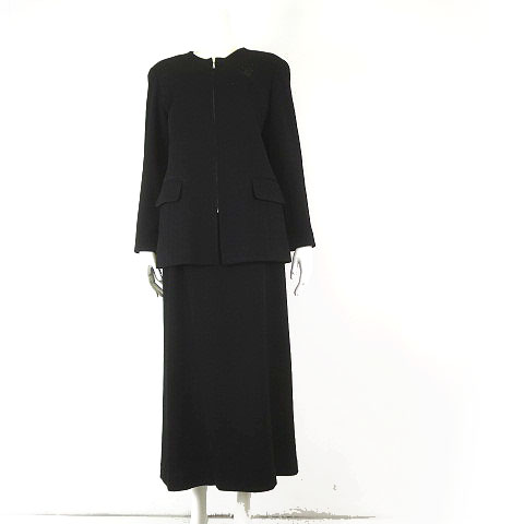 ダジュール D'azur 上下セットアップ スカートスーツ ふくれ ジャガード ジップアップ ノーカラー ジャケット ロングスカート M 9 黒