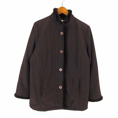 MADEMOISELLE KATHARINE ジャケット ナイロン 中綿 スタンドカラー ボア トリミング 長袖 M ダークブラウン キャメル レディース