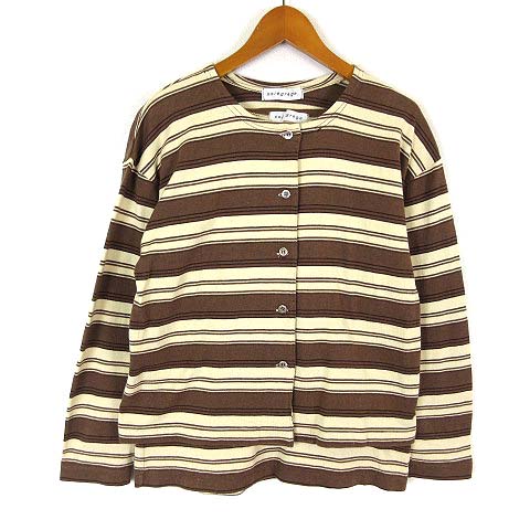 ソワグレージュ soiegrege アンサンブル カットソー ランダムボーダー コットン カーディガン クルーネック トップス 長袖 M 茶 ベージュ