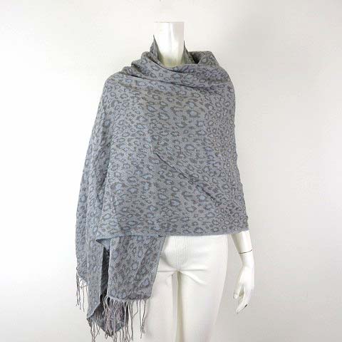 ビームスハート BEAMS HEART ストール マフラー 大判 ショール アニマル柄 ヒョウ柄 ブルーグレー 水色 レディース