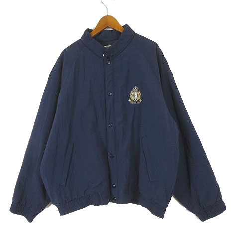 パリス PARIS ジャケット ブルゾン ナイロン 中綿 ロゴ ワッペン 刺繍 ゆったり ラグランスリーブ L 紺 ネイビー レディース
