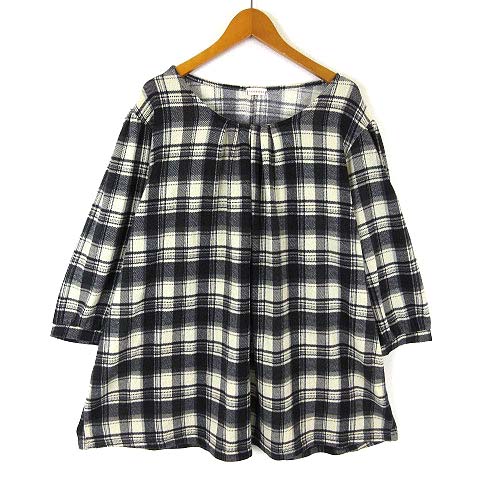 ノアンヌ noannu チュニックチェック柄 ストレッチ ギャザー ボリューム 7分袖 4L 黒 ブラック オフ白 グレー 大きいサイズ レディース