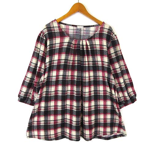 ノアンヌ noannu チュニック チェック柄 ストレッチ ギャザー ボリューム 7分袖 4L 赤 レッド マルチカラー 大きいサイズ レディース