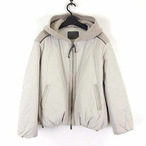ユヌマンション UNE MANSION ジャケット ブルゾン アウター 中綿 ウール ニット フード ドッキング F グレージュ 美品 レディース
