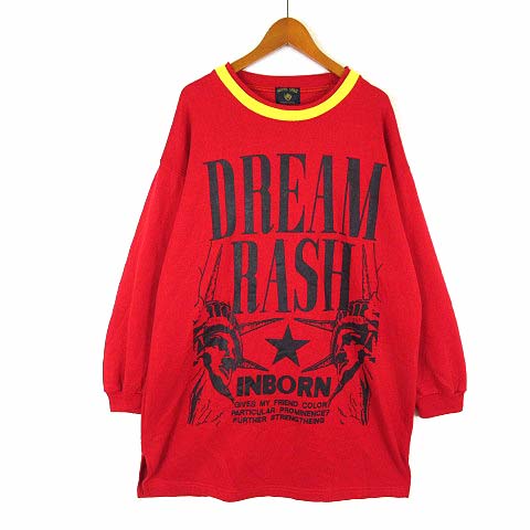 GENTIL SPIRIT チュニック ワンピース 自由の女神 英字 星 スター 配色 裏起毛 オーバーサイズ 長袖 L 赤 レッド 黒 ブラック 黄 イエロー