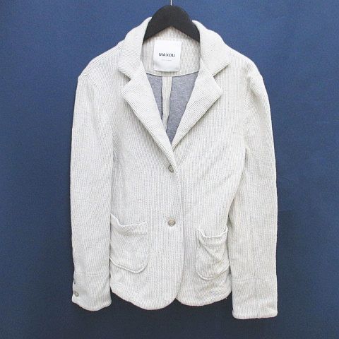 マクゾウゥ MAXOU ストライプ柄 ジャケット 2 白系 ホワイト 日本製 ポケット 綿 コットン 毛 ウール レディース