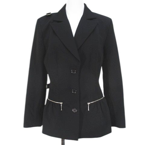 シネカノン Sinequanone テーラード ジャケット 38 黒系 ブラック Dリング ボタン 裏地 レディース