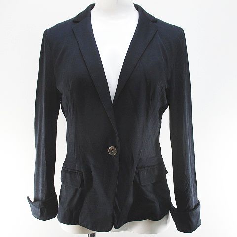 ミッシェルクラン MICHEL KLEIN テーラード ジャケット 薄手 38 黒系 ブラック ボタン レディース