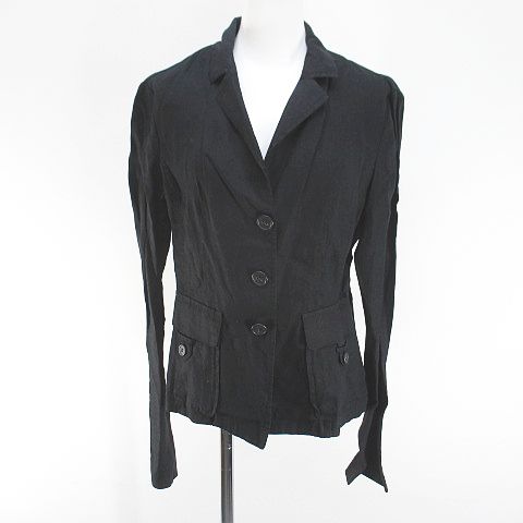 ユナイテッド・カラーズ・オブ・ベネトン UNITED COLORS OF BENETTON セットアップ スーツ ジャケット ワイドパンツ ジップフライ 麻 リネン 44 黒系 ブラック