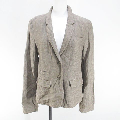 バナナリパブリック BANANA REPUBLIC セットアップ ジャケット テーパードパンツ 麻 リネン ジップフライ 10 12 茶系 ブラウン 裏地 無地 レディース