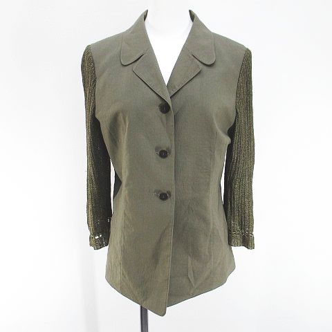 ロザース ROSACE セットアップ ジャケット ロング丈 ワイドパンツ ニット 麻 リネン 9 茶系 ブラウン 日本製 シースルー 透け感 切替 無地