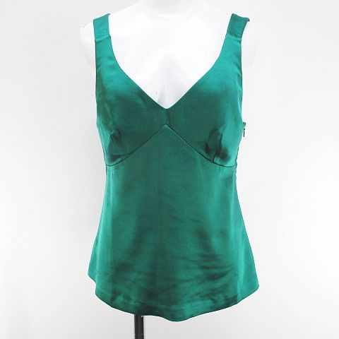 未使用品 ユナイテッド・カラーズ・オブ・ベネトン UNITED COLORS OF BENETTON ノースリーブ キャミソール タンクトップ S 緑系 グリーン サテン調 レディース