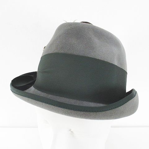 ボーラーハット 中折れハット 帽子 灰系 グレー 羽根 リボン レディース