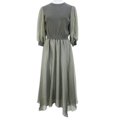 ダイアグラム Diagram セットアップ 七分袖 ニット カットソー ロング丈 フレアスカート 36 緑系 カーキ 切替 裏地 レディース