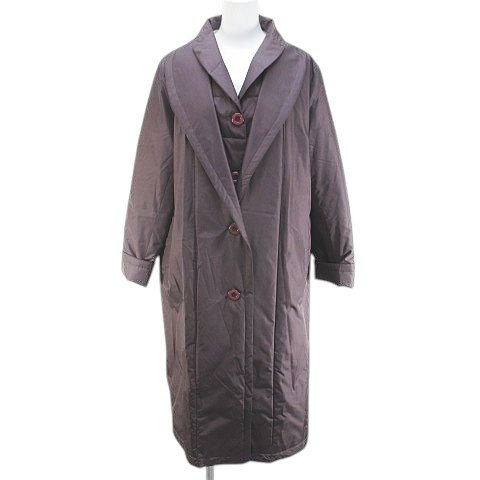 スピーガ SPIGA パデットコート ロング丈 絹 シルク M〜L 紫系 パープル ポケット 裏地 無地 レディース