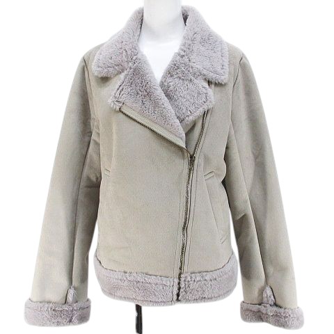 レイカズン Ray cassin ムートン調 ボア ライダース ジャケット F 灰系 ライトグレー 無地 ジップアップ レディース