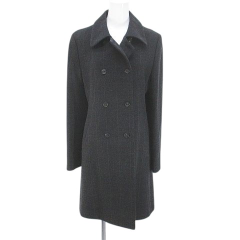 ミスクロエ miss chloe 格子柄 ピーコート ダブルブレストロングコート 42 灰系 グレー 日本製 ポケット 毛 ウール 裏地 レディース