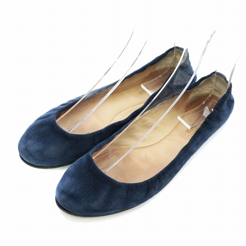 ジルサンダー JIL SANDER フラットシューズ バレエ ラウンドトゥ ギャザー スエード 36 23.0cm 紺 ネイビー /AQ レディース