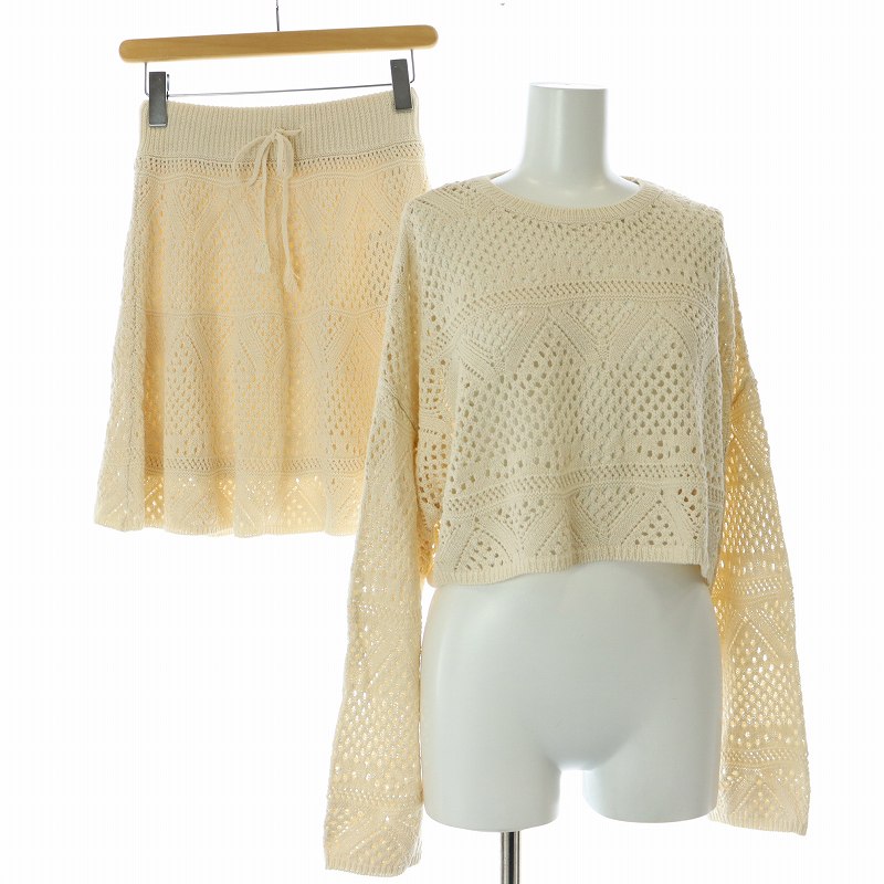 スナイデル クロシェクロップドプルオーバーニット セットアップ 上下 長袖 ショート丈 フレアスカート イージー ミニ丈 ベージュ