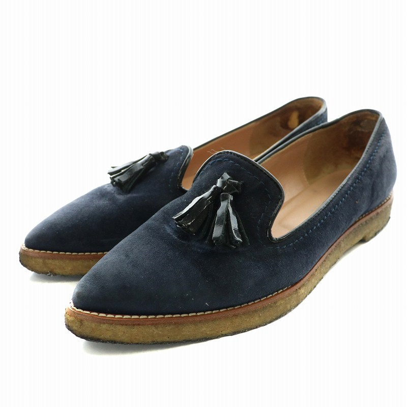 ファビオルスコーニ FABIO RUSCONI フラットシューズ パンプス ローファー スエード エナメル タッセル ポインテッドトゥ 23.5cm 紺