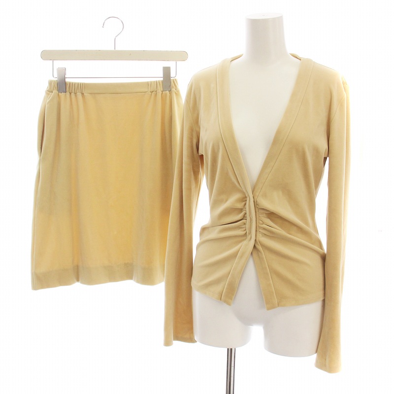 フォクシーニューヨーク FOXEY NEW YORK セットアップ ベロア カーディガン 長袖 スカート 台形 ひざ丈 40 ベージュ 19842 13797