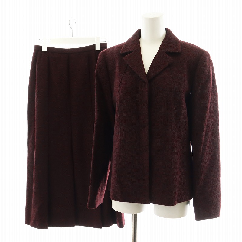 未使用品 レリアン Leilian スーツ セットアップ ジャケット フレアスカート ひざ丈 アンゴラ混 9 赤 レッド 黒