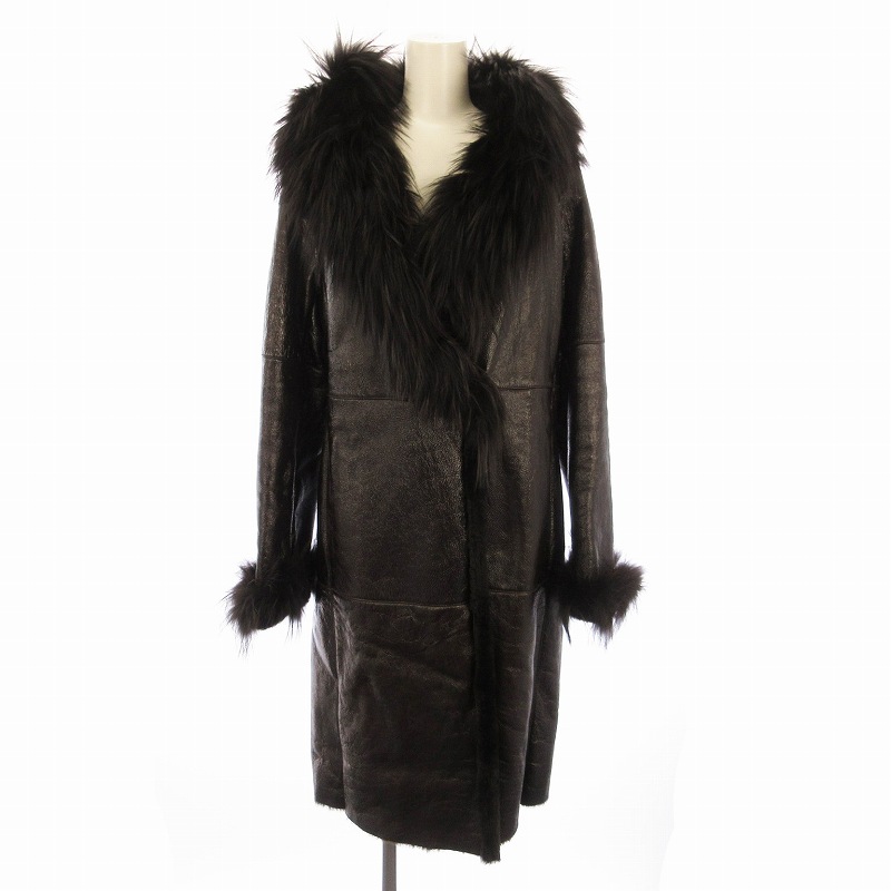 ヨーコドール YOKO D'OR レザーコート ファー ロング ラムスキン シルバーフォックス 38 茶 ブラウン KNJ0623558 /EE レディース