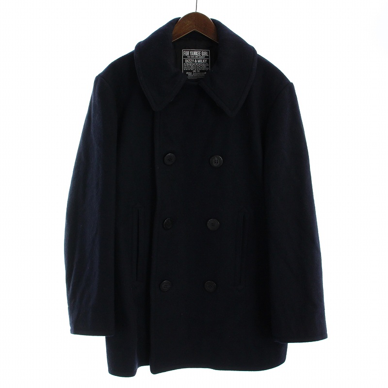 ヒステリックグラマー HYSTERIC GLAMOUR Pコート ピーコート アウター ミドル丈 ダブル ウール L 紺 ネイビー 02223AC04