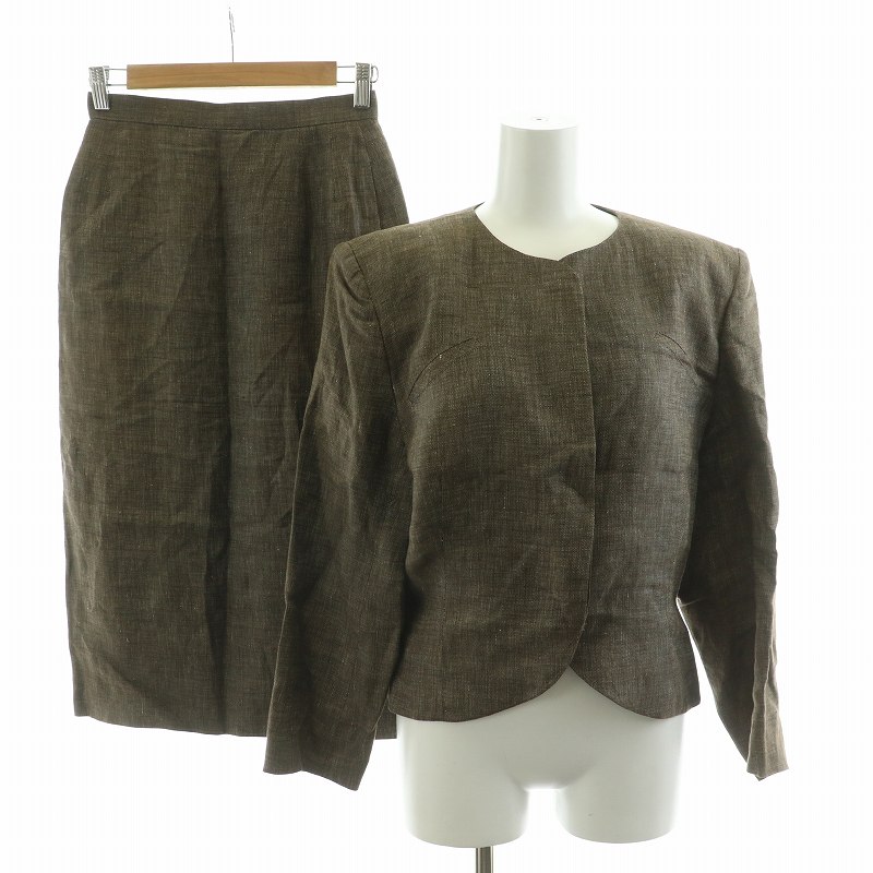 ヨシエイナバ yoshie inaba セットアップ タイトスカート ノーカラージャケット ロング ブラウン 19YT-01 /NQ レディース