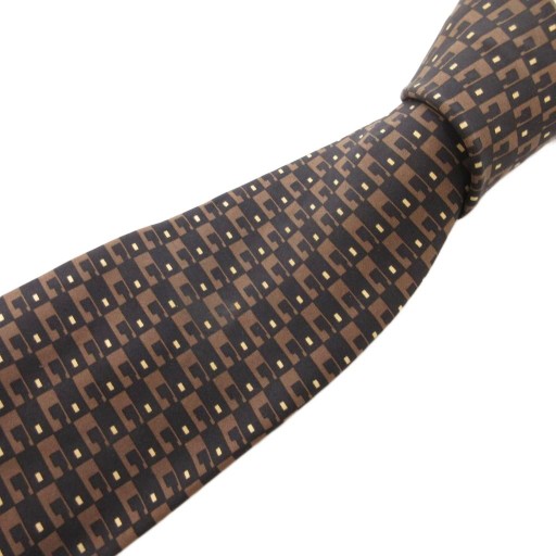 グッチ GUCCI ネクタイ 絹 シルク 茶 ブラウン 黒 ブラック 総柄 /FF メンズ
