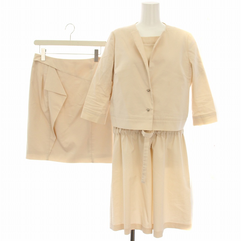 アンテプリマ ANTEPRIMA セットアップ 3点セット ジャケット 七分袖 ワンピース 半袖 ひざ丈 台形スカート フリル 40