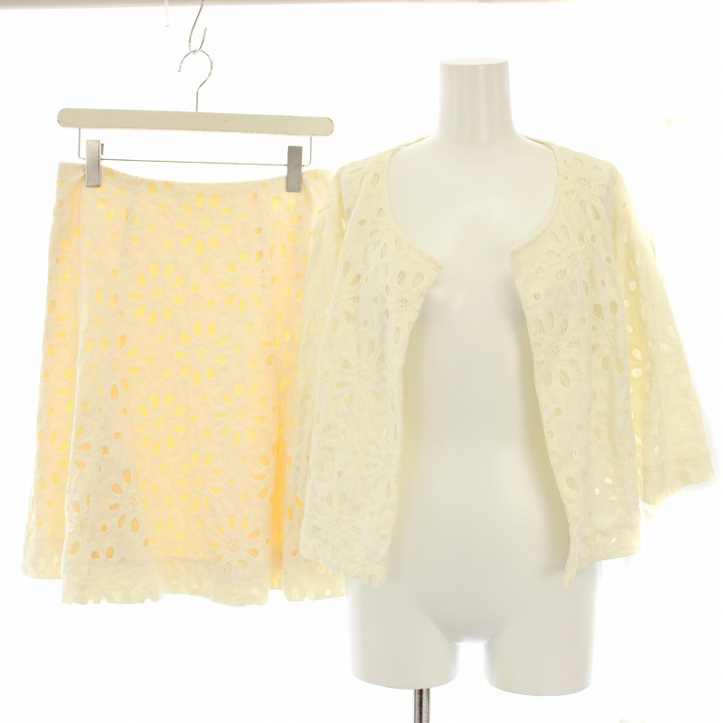 アンテプリマ ANTEPRIMA セットアップ 上下 カーディガン 半袖 ショート丈 総レース フレアスカート ひざ丈 カットワーク 40