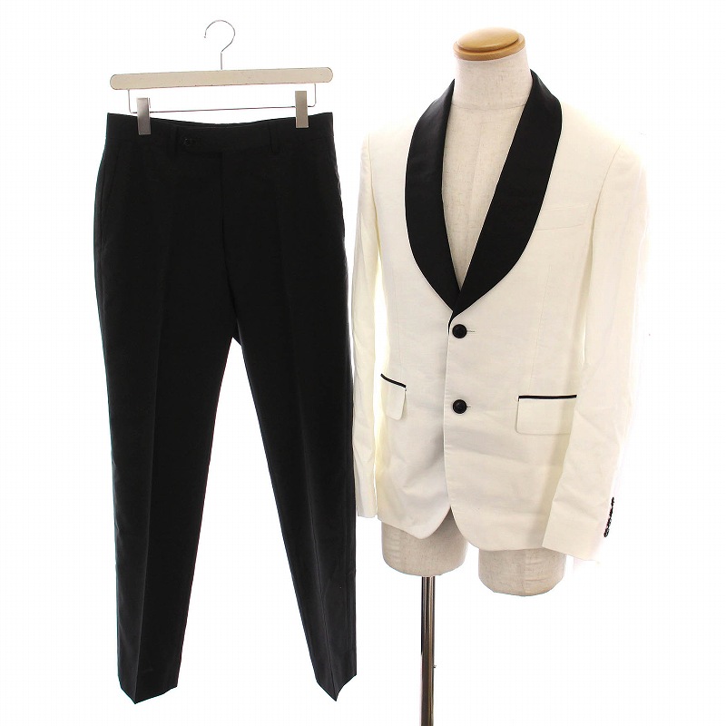 ビームス BEAMS DESIGN ワタナベウェディングコラボセット 燕尾服 タキシード サスペンダー付き パンツ セットアップ 上下 白 黒
