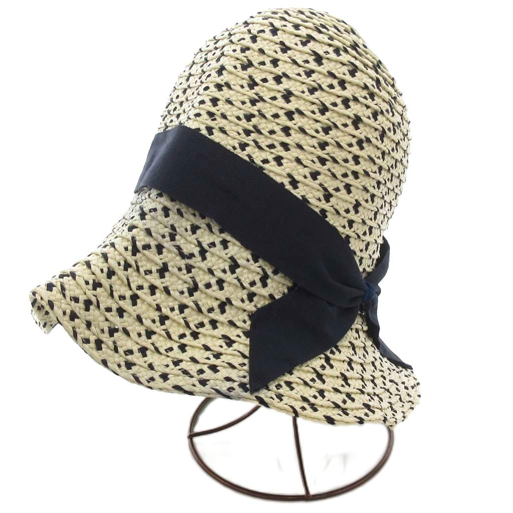 カテリーナベルティーニ caterinabertini クロッシェ 帽子 ハット 総柄 リボン 白 ホワイト 紺 ネイビー /JS レディース