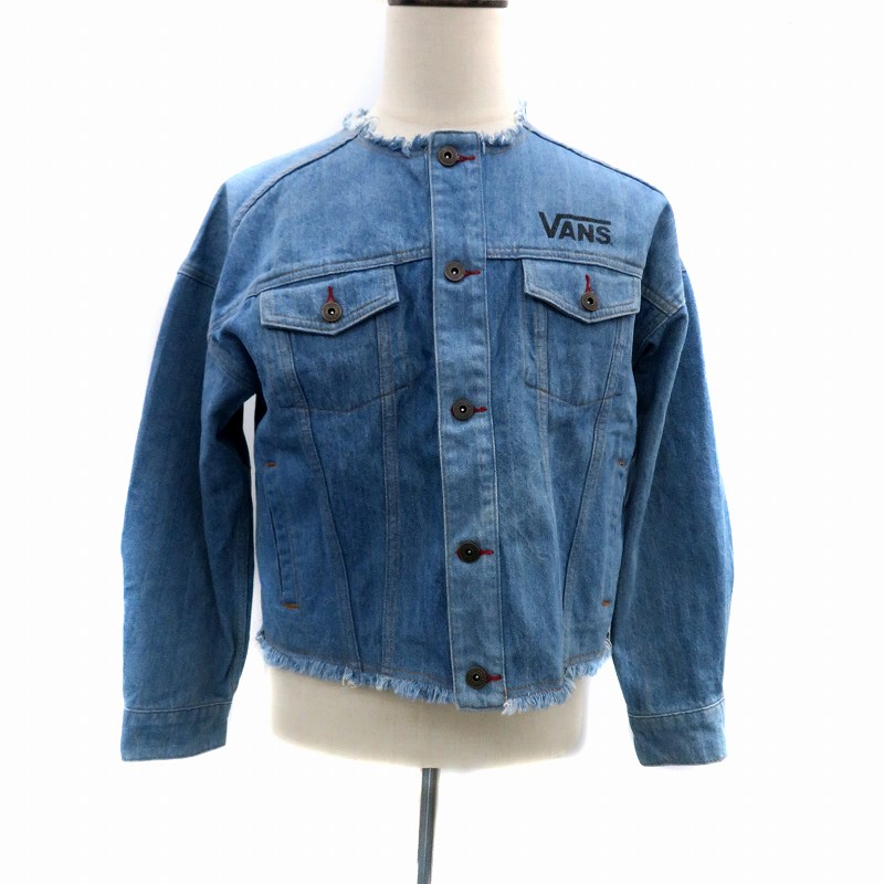 バンズ VANS デニムジャケット Gジャン ジージャン ノーカラー ミドル丈 プリント カットオフ M 水色 ライトブルー /HO32 レディース