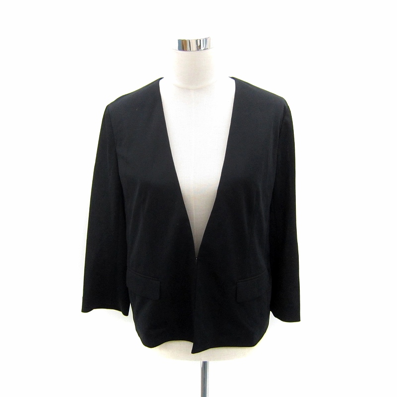 自由区 オンワード樫山 ノーカラージャケット ミドル丈 薄手 無地 42 XL 黒 ブラック /SY31 レディース