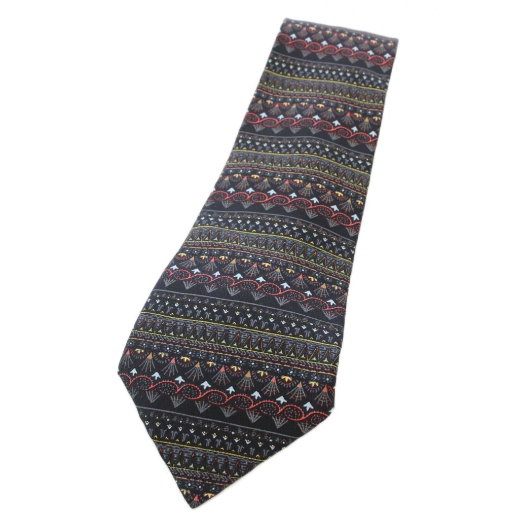 エルメス HERMES ネクタイ シルク 総柄 ワイドタイ 黒 /TK ■OH メンズ