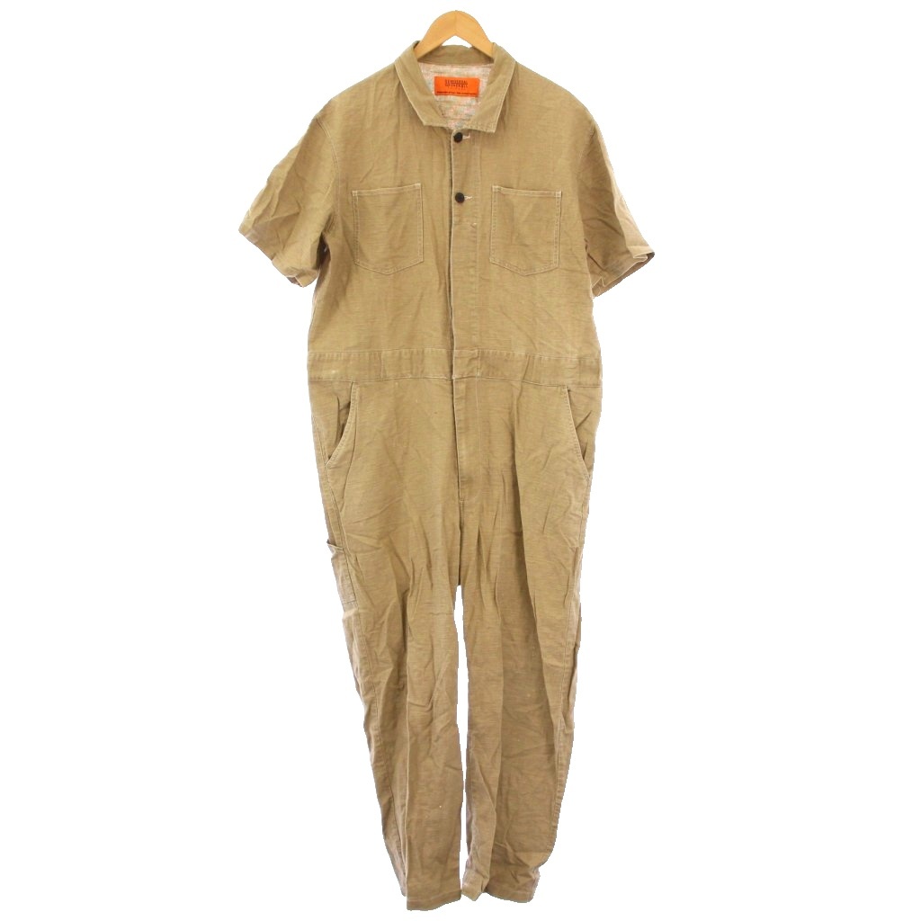 ユニバーサルオーバーオール オーバーオール オールインワン つなぎ スラックスパンツ 半袖 レギュラーカラー ハーフボタン F ベージュ