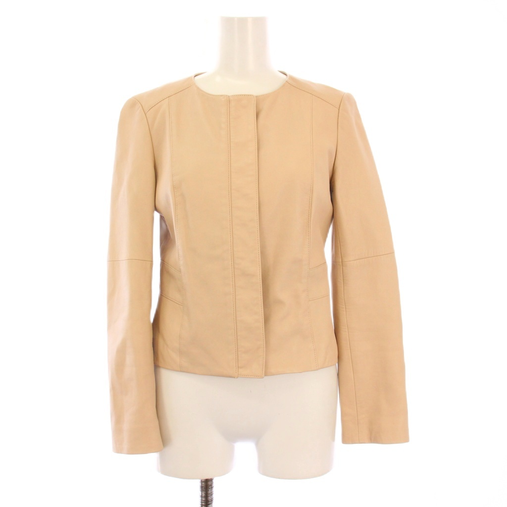 アナイ ANAYI レザージャケット 革ジャン 羊革 ノーカラー アウター ショート丈 ジップアップ 36 ピンクベージュ /BB レディース