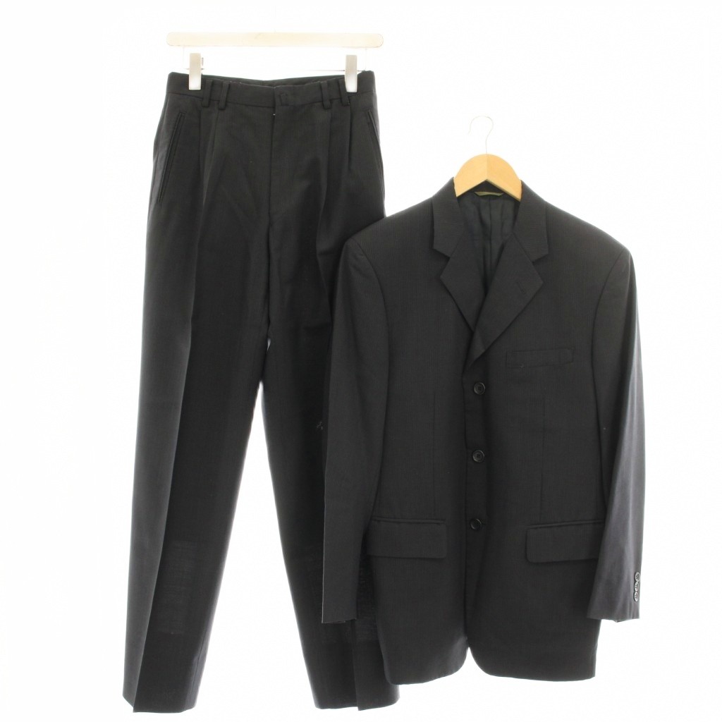 【実寸サイズ】ジャケット 肩幅:44.5cm ジャケット 身幅:51cm ジャケット 袖丈:59.5cm ジャケット 着丈:74cm パンツ ウエスト:66cm パンツ もも幅:27cm パンツ 裾幅:19cm パンツ 股上:35cm パンツ 股下:74cm