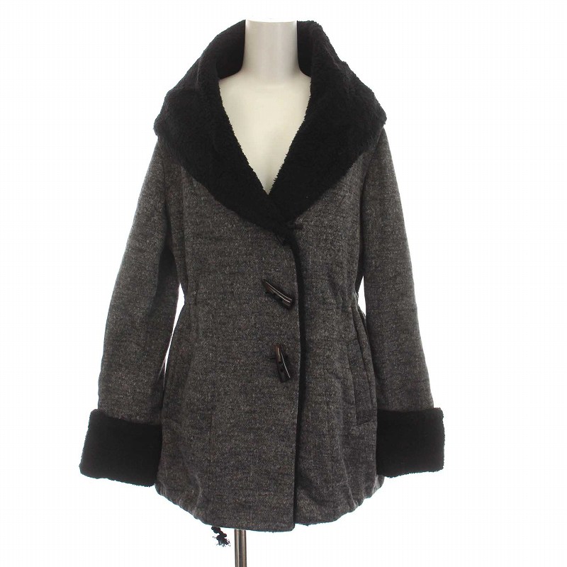 スコットクラブ SCOT CLUB ダッフルコート ボア フード付き トグルボタン アウター 9 M グレー 黒 ブラック /YM レディース