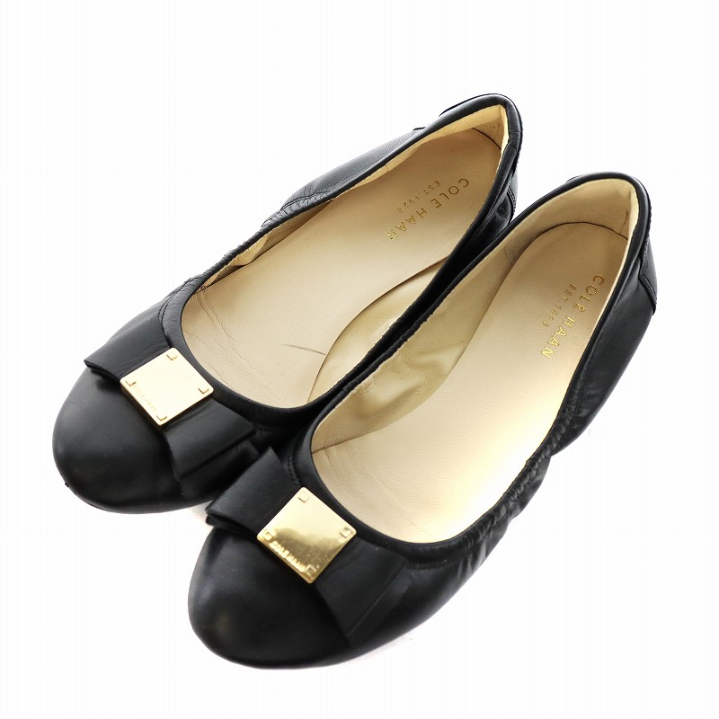 コールハーン COLE HAAN フラットシューズ パンプス ラウンドトゥ リボン レザー 5 22.0cm 黒 ブラック /AN3 ■OF レディース