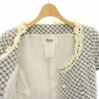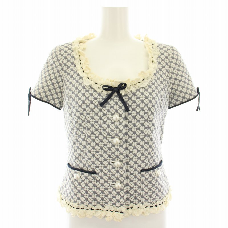 ルネ Rene ティシュー TISSUE ノーカラージャケット アウター 半袖 花柄 レース リボン 34 紺 ネイビー 白 ホワイト /YT ▲H レディース