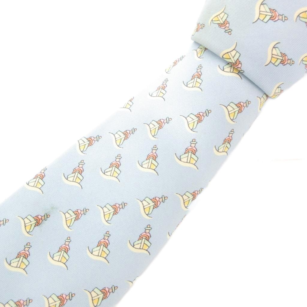 エルメス HERMES ネクタイ カジュアル 総柄 絹 シルク 水色 ライトブルー /GV ■GY14 メンズ