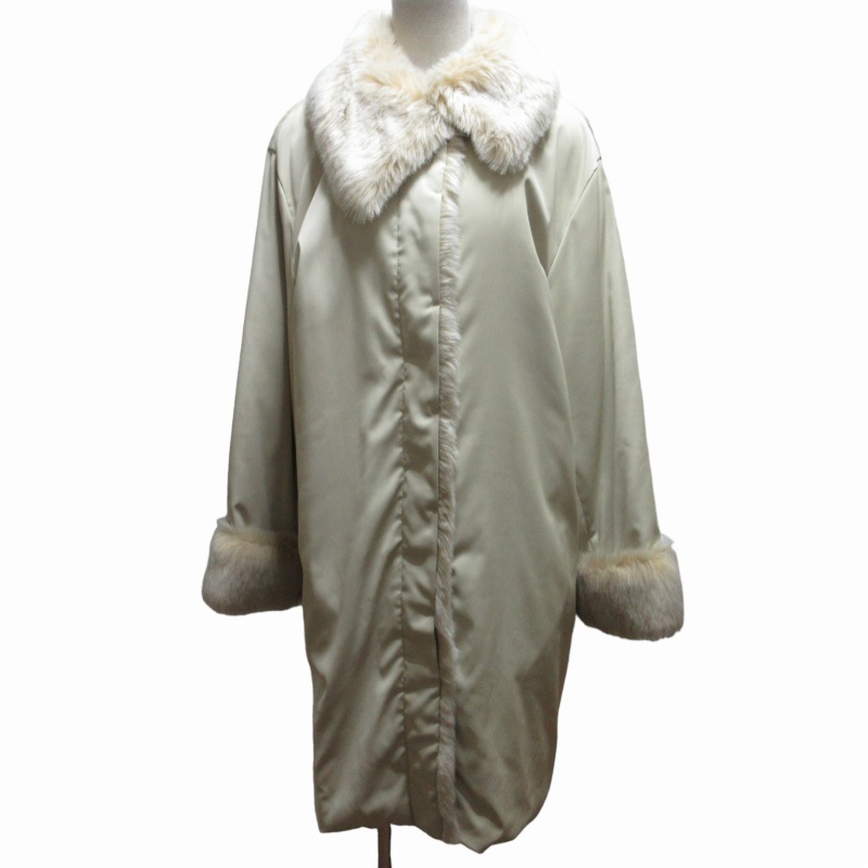 レリアン Leilian フェイクファー切替 中綿コート ジャケット ストレッチ有 ベージュ 9 約Mサイズ 0610 ■KK5 レディース