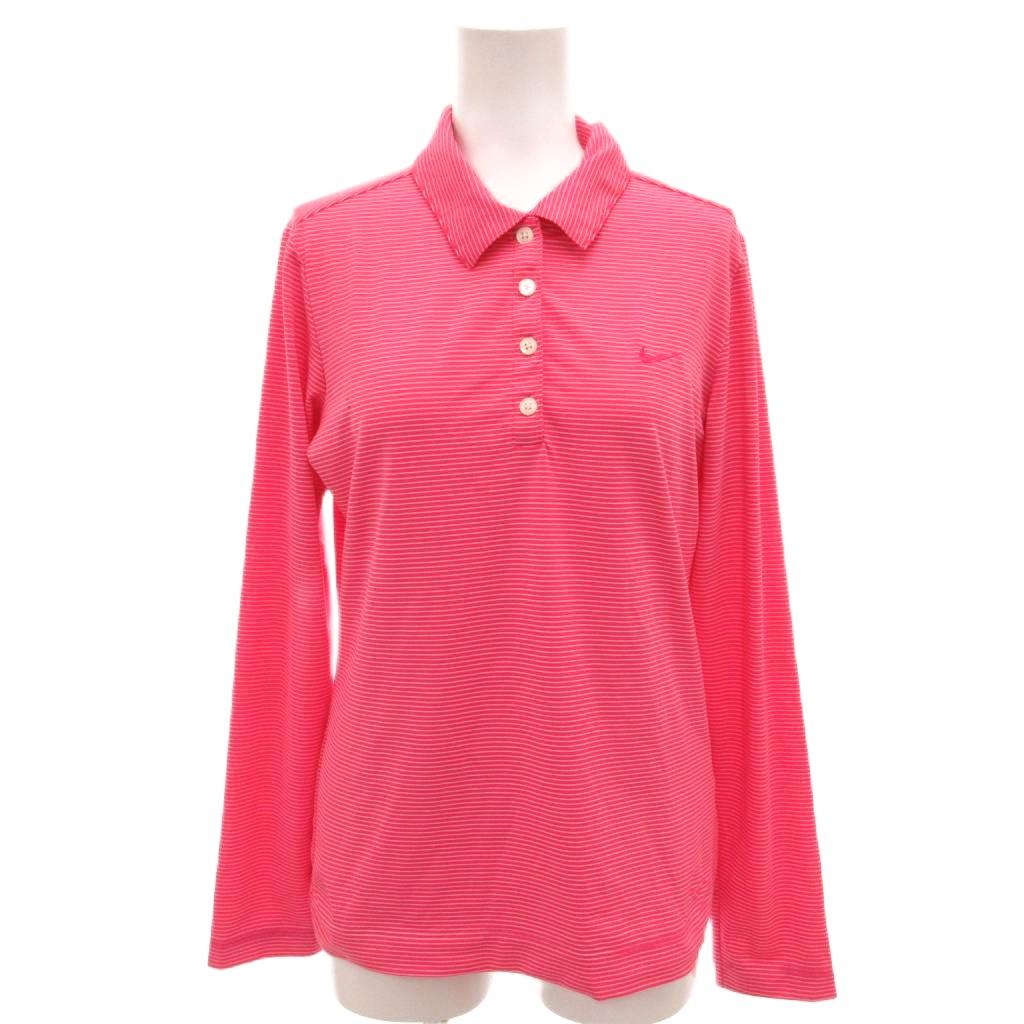 ナイキゴルフ NIKE GOLF ポロシャツ ゴルフウエア ボーダー ロゴ刺繍 長袖 XS ピンク /FF ■YHS1 レディース