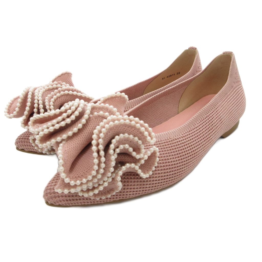 ダイアナ DIANA CUMUU フラットシューズ 22cm パンプス ポインテッドトゥ フリル ビジュー ピンク /AE IBO86 レディース