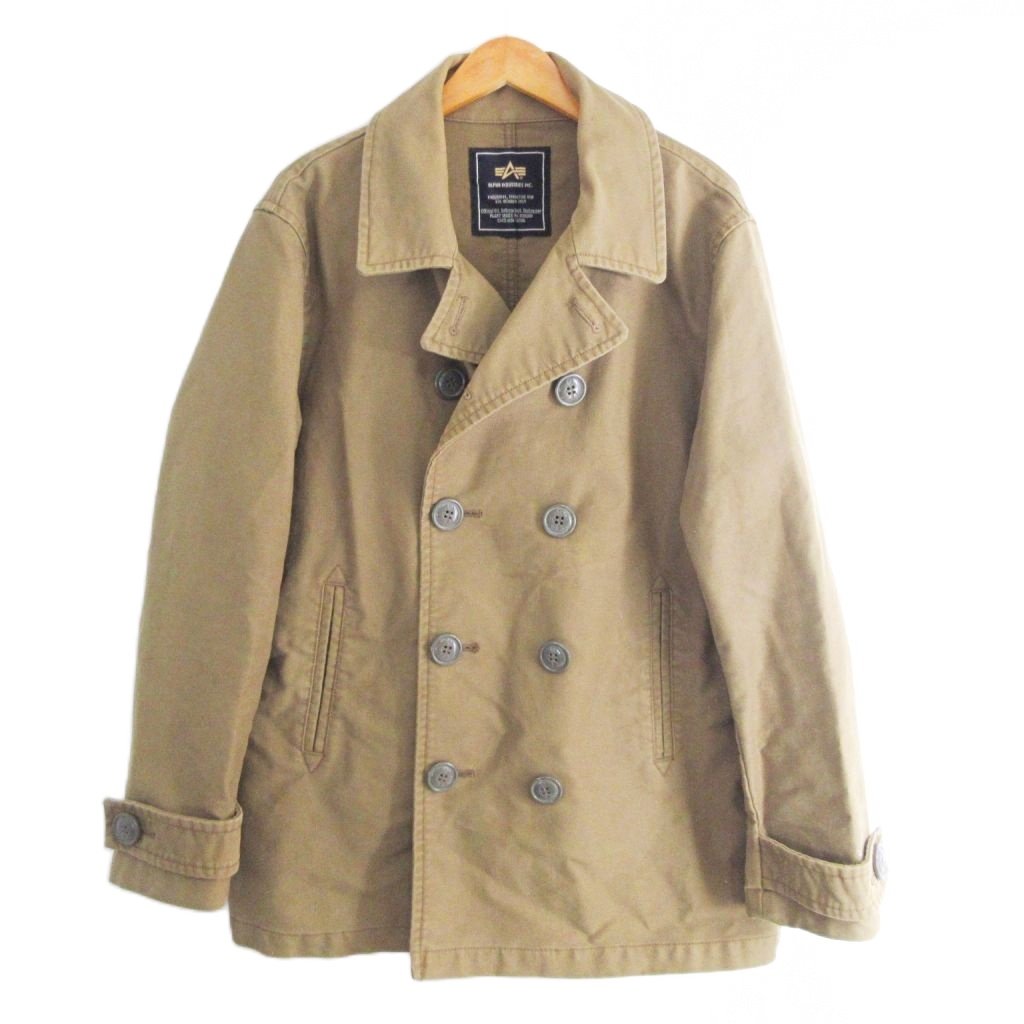 アルファ ALPHA ピーコート ジャケット ミリタリー コットン ダブル XL 茶 カーキ ブラウン 系 1218 メンズ