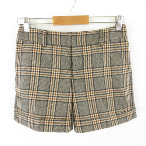 イネド INED ショートパンツ チェック ストレッチ 黒 ベージュ 7 *E304 レディース