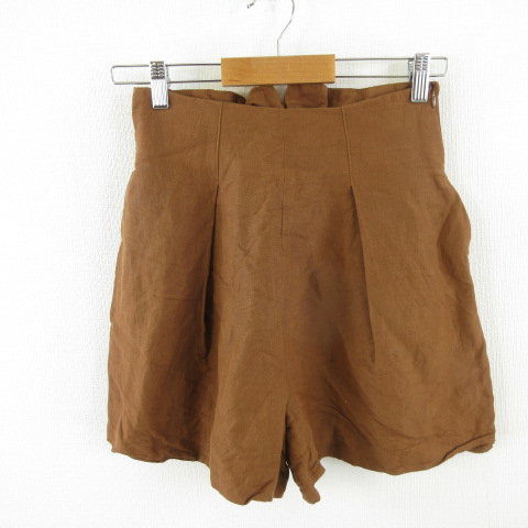 ラグナムーン LagunaMoon ショートパンツ キュロット ハイウエスト リネン混 茶 S *E211 レディース